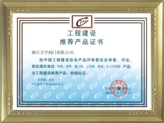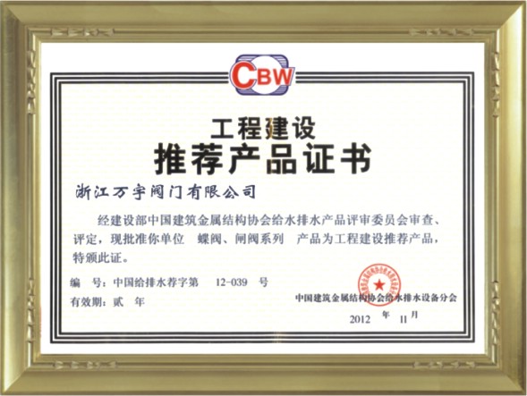 工程建設推薦產品證書